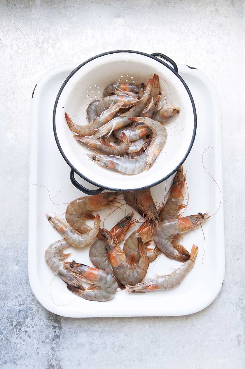 They’re the go-to prawn for the eponymous cocktail and they’re also a messy pleasure to eat with the shell on, although only what are known as the tails (actually the bodies) are eaten. Be sure to remove any dark gut, which runs along the back. And the front half of the shell also yields flavour, so suck, don’t chuck.