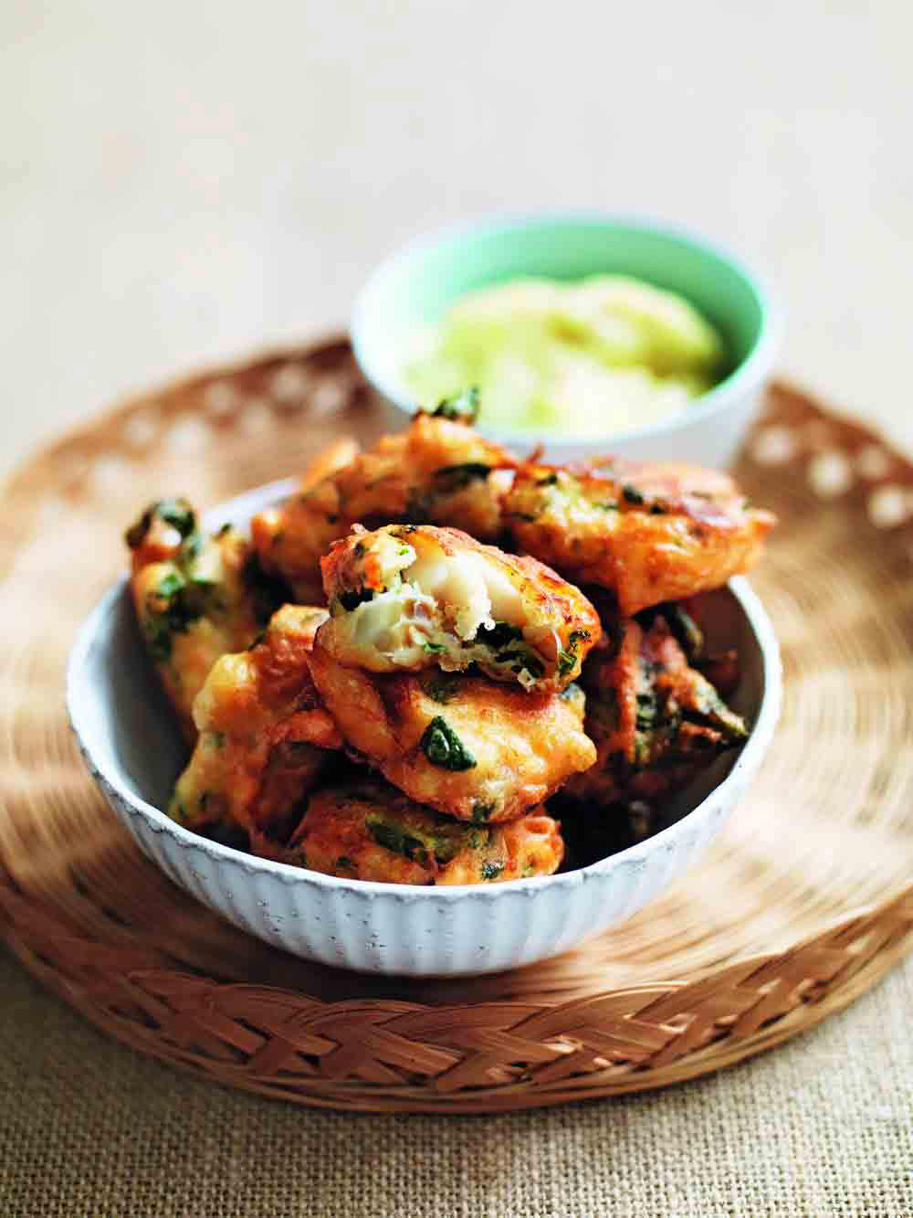 Heat enough olive oil for shallow frying in a large frying pan. Use a greased tablespoon to drop spoonfuls of the batter into the oil and fry for 8-10 minutes, until golden brown. Work in batches to avoid overcrowding the pan. Use a slotted spoon to transfer the fritters to kitchen paper to drain. Sprinkle with sea salt and serve hot or at room temperature with aïoli for dipping.