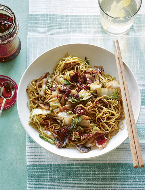 Bring a large pan of water to the boil, add the noodles and cook according to the pack instructions, minus 2 minutes’ cooking time. Drain and rinse in warm water to remove any excess starch, then toss with 1⁄2tbsp of the oil to prevent them sticking together and set aside.