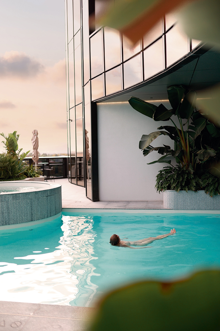 In the CBD’s vibrant east end, a highlight at the otherwise low-key Vibe Hotel Adelaide is its suspended pool, which straddles two buildings. vibehotels.com
