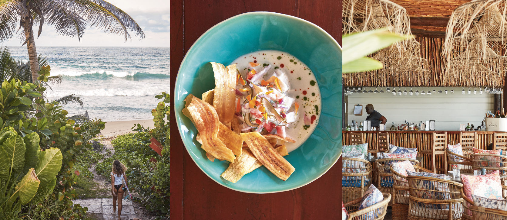 Food security and sovereignty are also championed by a crop of newer green initiatives. At the biodynamic PEG Farm and Nature Reserve, set high on a hilltop with sweeping views, chef Nathan Crichlow runs the Farmhouse Café – an airy, Scandi-style pavilion of wood and glass. Tall, handsome and quick to smile, Nathan honed his skills at Sandy Lane under a roster of international chefs. ‘My partner Rebecca and I are still at the beginning,’ he says. ‘We want to get even more creative and culturally relevant, to really push local foods and healthy eating. Some people arrive expecting rice ’n’ peas, while others want outdated fine dining – but then they taste our food and are blown away.’ Or, as the Bajan saying goes, the memory is ‘sweet-fuh-days’.