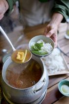 A mainstay and crowd-pleaser of Vietnamese cuisine, these days, pho can be found in most major cities worldwide. Although it originated in North Vietnam, the version known in the west was introduced by the South Vietnamese diaspora. Northern-style pho retains much of the same profile but typically contains a smaller quantity of the pho spices cinnamon, star anise and cloves, and sugar. When travelling to North Vietnam, it’s essential to try Hanoi- style pho ga (chicken pho), a lesser-known variation but equally deserving of the attention received by its counterpart. For your first foray into pho ga, there’s no better place to start than in its city of origin. No need for a dab of hoisin sauce in this clear broth; the gaminess of Vietnamese free-range chicken packs a mass of flavour.