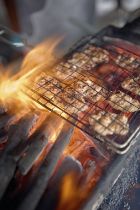 Now in his late thirties and a father of two young children, he recalls not knowing what to do with himself once his first-born arrived but, having always had a knack for cooking over fire, he and his wife took a chance and opened a roast duck cart to see how it would go (in his words, ‘Neu minh khong lam thu, thi khong biet’ – if we don’t try, then we won’t know). Their popularity quickly grew and soon crispy roast pork, roasted duck feet and marinated pork neck skewers were added to the menu, which is now the talk of the town. Some customers even visit daily to purchase rendered duck fat for their home cooking.