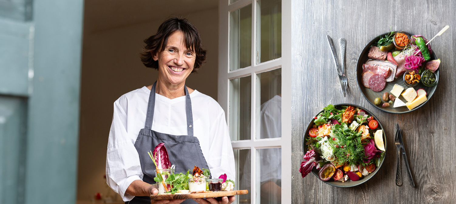 Louise and her chef husband Thomas are dedicated to selfsustainability; their fresh, seasonal menu sources as much as possible from their own crops, with contributions from folk within the community. ‘Sometimes Jens calls and says, “We just shot three deer,”’ says Thomas. ‘We can put them on the menu straightaway.’