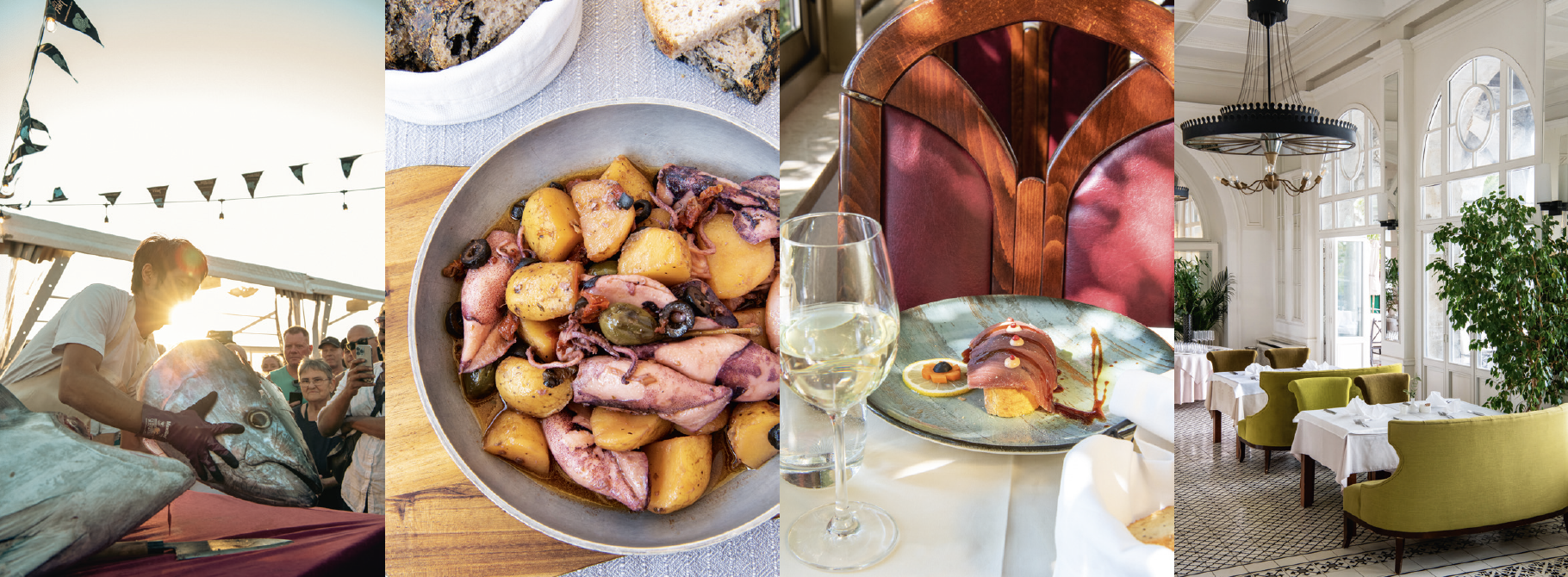 Behind the stalls, some of the area’s most renowned chefs, wearing striped t-shirts for the occasion, dish out generous portions of local specialities – mackerel brudet stew, breaded anchovies, fried sprats, sardine fillets. Live music is played; wine is uncorked. A celebration of life’s simple pleasures that has the juicy taste of slow-simmered tuna pašticada and soft polenta.