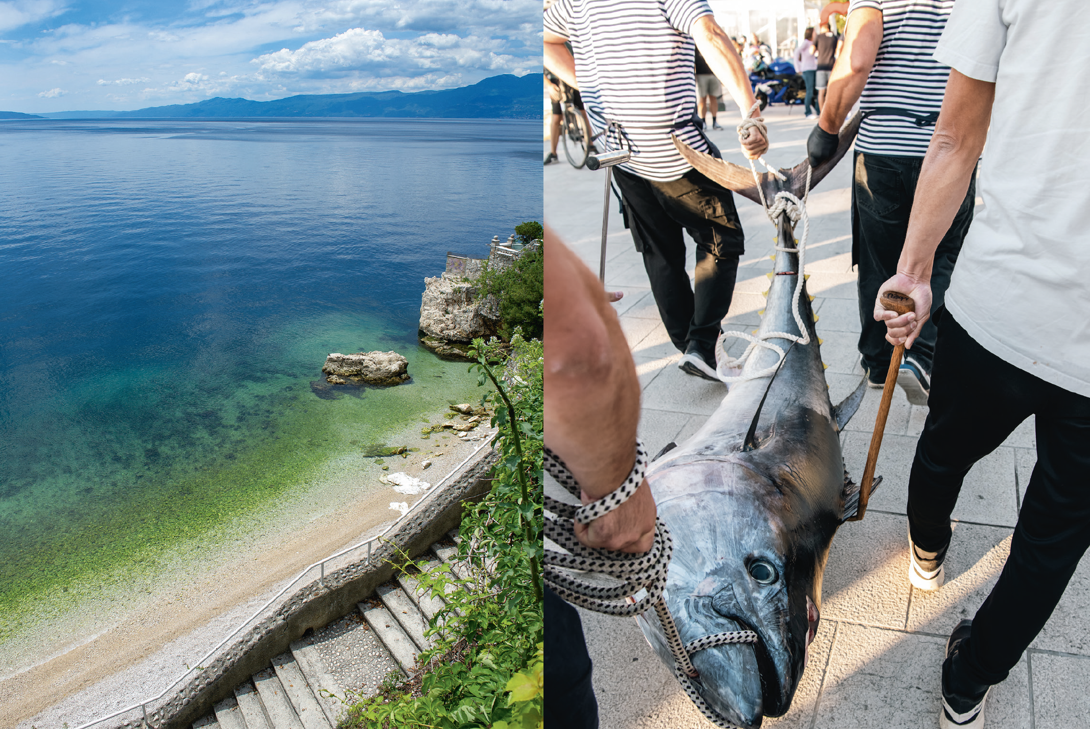 It takes four men to lift the 110kg giant from the boat to the quay. After having carefully tied it by its mouth and huge tail fin, they carry it to Stjepan Radić Square on Crikvenica’s sun-drenched waterfront. There, sushi master Nobuhito Okada is gearing up with his remarkable set of knives, ready to artfully process it and turn it into gastronomic delicacies in front of a wide-eyed crowd.