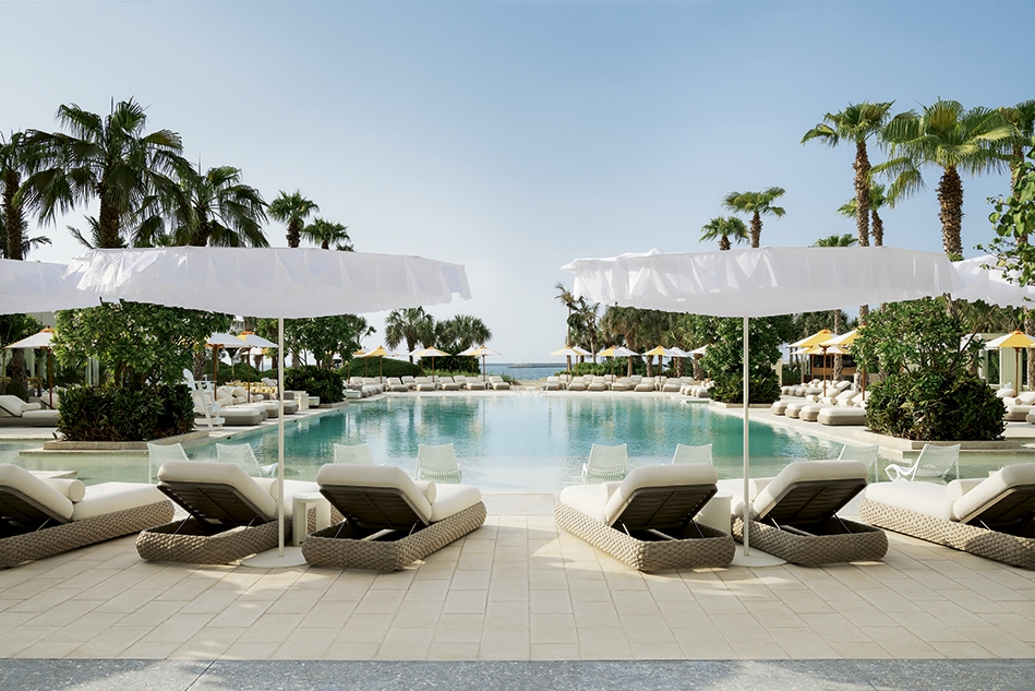 Enter (man-made) Bluewaters Island, and the Delano Dubai. Back in the Nineties, the US- based, design-focused Delano stable made its name with Delano Miami, offering a relaxed riposte to the fast pace of the city – and it is still channelling this welcome vibe in Europe and the Middle East.