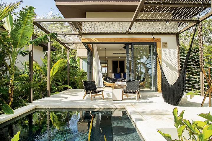 a yoga and wellness centre, 17 spacious bungalows and suites, thatched-roof restaurant Manzú – for tacos, grilled picanha, fresh Malpaís fillet sea bass – and breathtaking views of the ocean and sunsets. Let the kids run wild. And relax.
